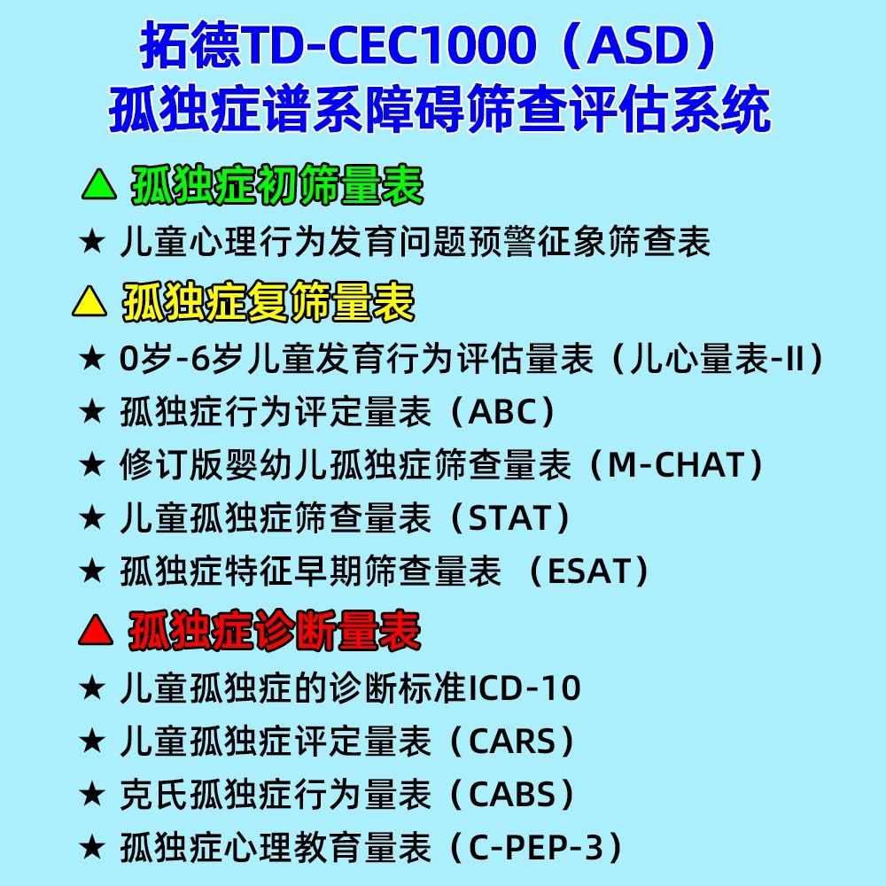 • 拓德0-6歲孤獨(dú)癥譜系障礙篩查評(píng)估系統(tǒng)ASD心理教育量表CPEP3